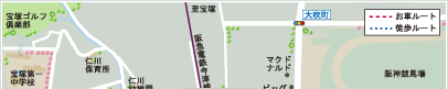 ※掲載の距離・分数は、地図上からの概測であり徒歩は80mを1分として算出しております。