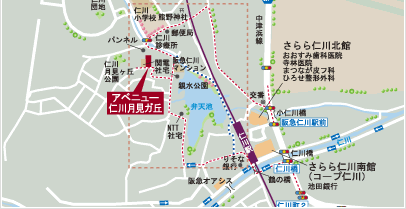 現地から仁川小学校までは約400m。周辺には仁川幼稚園、宝塚第一中学校が集まります。仁川診療所(内科、胃腸科、放射線科)、宝塚鹿塩郵便局、人気のパン屋さん「パンネル」も徒歩圏内です。